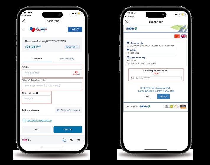 Giao diện thanh toán qua “Thẻ nội địa và tài khoản ngân hàng”